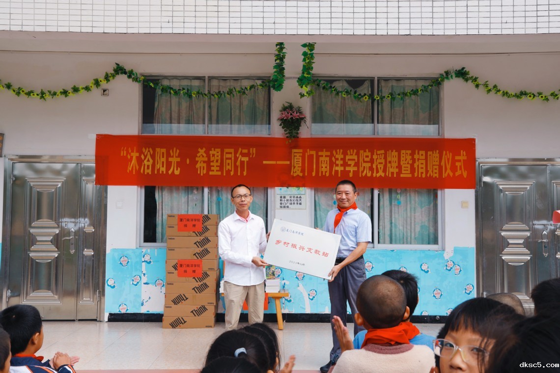 2023年10月12日上午,厦门南洋学院乡村振兴支教站授牌暨捐赠仪式在安溪县龙门镇双桂小学隆重举行。本次厦门南洋学院捐赠电脑及图书,用于双桂小学的教育建设。